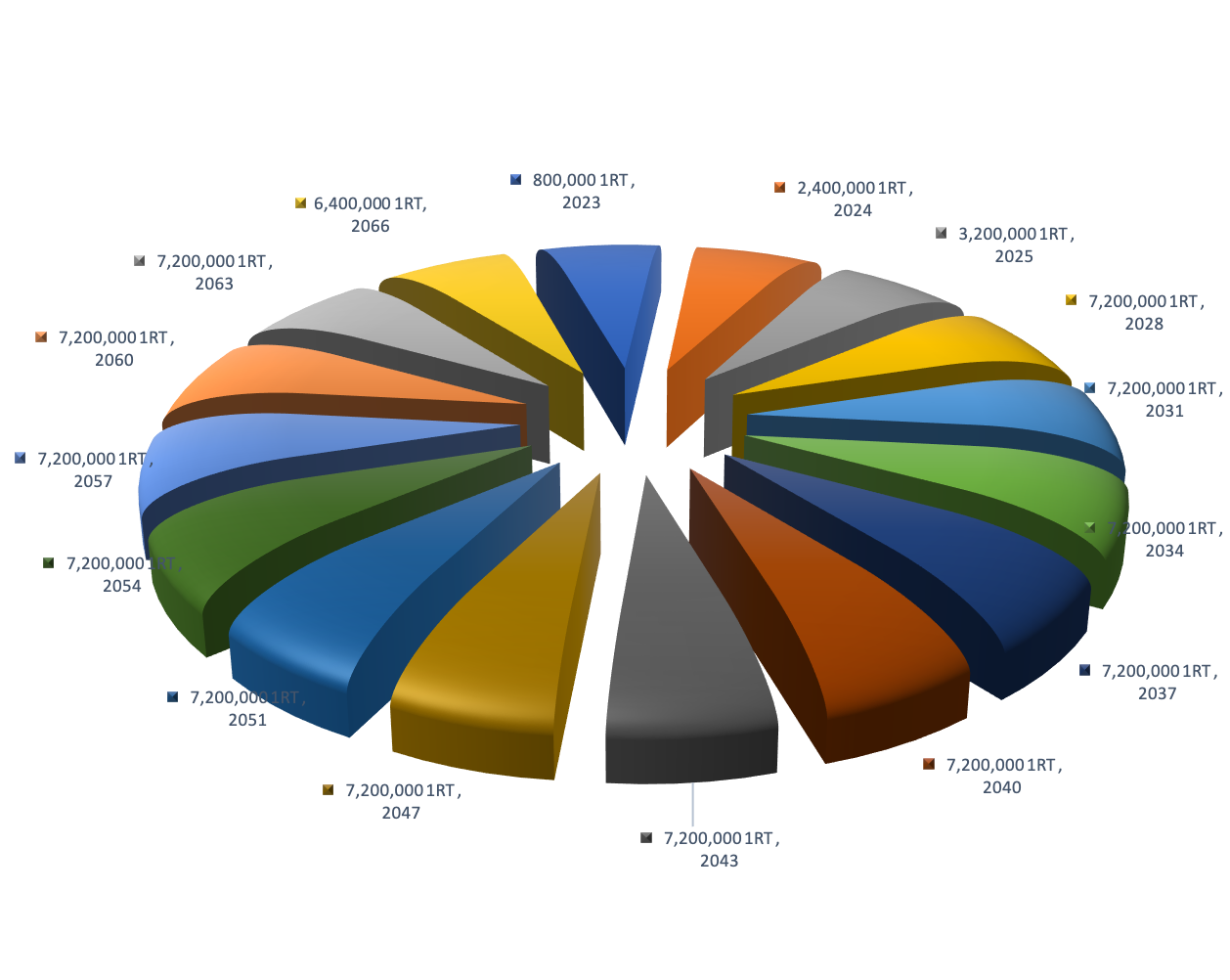 &#x20;96,000,000 - Desembolso de 200,000 1RT cada mes a partir del 1 de septiembre de 2023. El desembolso final será en el año 2066.